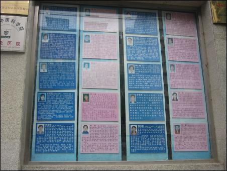 醫(yī)院的櫥窗里掛滿了中醫(yī)專家的介紹
