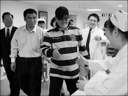 昨天,趙本山在上海華山醫(yī)院出院第一天,本報記者再次踏入醫(yī)院住院部時,這里因為趙本山的離開、媒體的撤離變得一片寧靜。趙本山所住的華山醫(yī)院6號樓12層的華順協(xié)和病房外,醫(yī)院也解除了監(jiān)控,不再有保安把守。記者找到趙本山入住及親人陪護的3間病房,都已經(jīng)換了新的病人。其中隔壁病房的胡先生告訴記者,趙本山是住的21號到過道窗口的三間病房?!摆w本山住院期間,我們也在這里??赡苁且驗樯〉木壒?,他沒有以前氣色好,我們在過道碰見他,他也非常友好?!焙壬f,趙本山吃飯都在病房里,只是偶爾能在過道上、醫(yī)院花園里能碰見他?!摆w本山住院期間,醫(yī)院安保工作非常嚴密。他是大笑星,受到這樣的待遇是應該的。他能出院,我們也很高興,祝愿他早日痊愈,再上春晚舞臺給我們表演小品。”