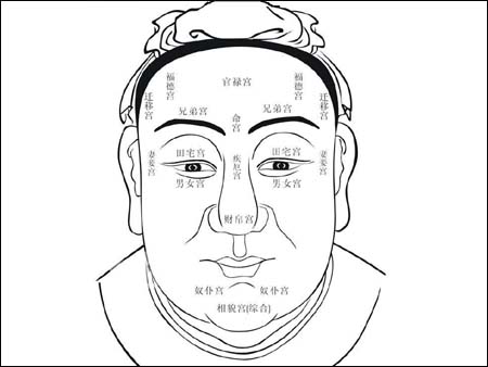 面相學是以臉部特定的"位”為根據(jù)的,它的每一位都代表著一個階段的年齡,并可以顯示出一個人的命運和個性,從這兩方面來講,尤其是命運。相士可以從某一個"位”之中測定來看相人的命運或者是預測出他在那一年會發(fā)生什么事情和事故。舉例來加以說明,比如說看相人告訴相士他今年是三十七歲,相士就會首先在三十七歲這個地方,也就是他左眼的瞳孔之中作觀察。