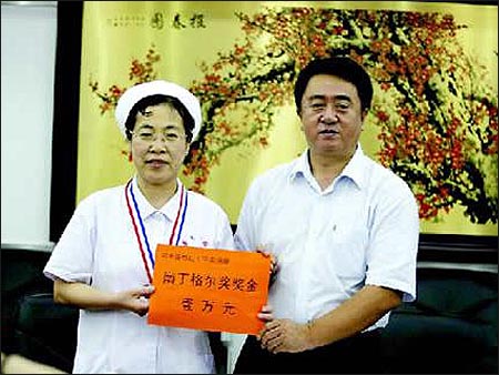??? 2007年,丁淑貞獲第41屆南丁格爾獎(jiǎng)?wù)拢\濤總書記親切接見并為她頒獎(jiǎng),是大連市第一位南丁格爾獎(jiǎng)?wù)芦@得者。