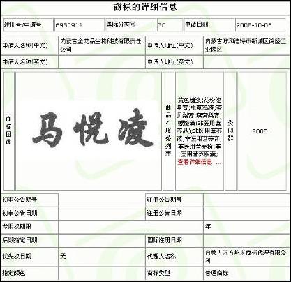 內(nèi)蒙古金龍品生物科技公司30類的申請(qǐng):