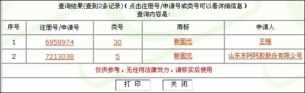 山東人王梅同時注冊了新固元和馬悅凌的商標(biāo)