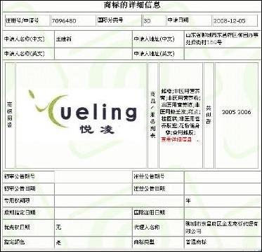 “悅凌”,也是在30類,是山東聊城的王建新申請。