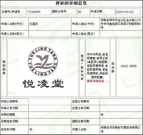 河南鄭州王國慶在2009年4月20日申請了悅凌堂