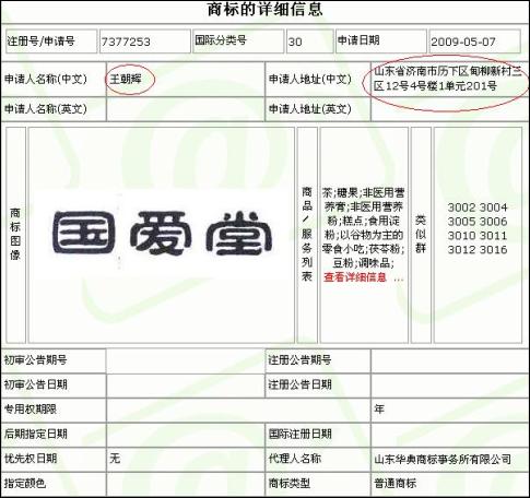 又一位王同學(xué)躍入我們的眼簾,而且有意思的是,王朝輝和王梅是同一個地址門牌號碼都一樣,看來是一家人,好一個漫天過海,故意制造眾多“馬悅凌”固元膏的假象給公眾,試圖讓大家覺得誰都可以叫“馬悅凌”,而且在商標申請策略上,又用了“李代桃僵”的伎倆,以便被權(quán)利人追究責(zé)任時好來個“金蟬脫殼”,保存實力……高!實在是高,我突然發(fā)現(xiàn)一個問題,發(fā)現(xiàn)在馬悅凌固元膏事件中,王姓的同學(xué)特別多,既然他們這么推崇“馬悅凌、固元”這些詞,不如改名叫“王固元”、“悅凌王”好了,哈哈,玩笑一把。寫到此處我禁不住想,保不齊有人看了我的文章真去申請這些詞作商標的。