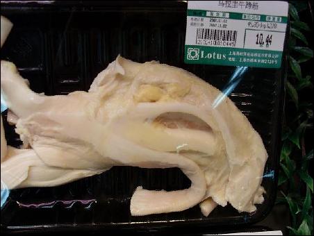 圖為2007年上海易初蓮花超市銷售的烏拉圭牛蹄筋,每公斤售價(jià)45.8元