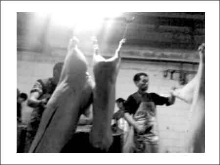 巨源屠宰廠里的死豬宰殺