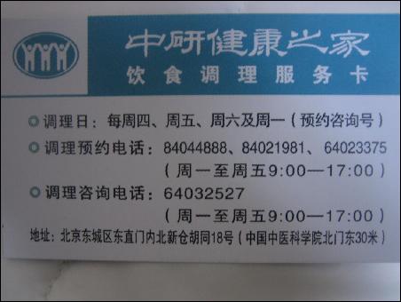 這是張悟本門診處給的名片正面