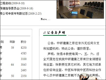 其實,張悟本,不只是在這一個地方看病,這是中研健康之家的網(wǎng)址:http://www.china-tcm.com/zyjkzj/,首頁上是這樣標注的: