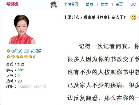 馬悅凌在自己的論壇上談出版《養(yǎng)生》雜志的感受