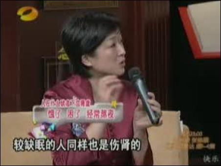 看完這段視頻,想必大家可能覺得馬悅凌說的也不錯,畢竟,人家這身子骨就是靠熬夜熬出來的??墒?,當(dāng)你再看了下面這段2010年1月20日,也就是昨天晚上,同樣還是在湖南衛(wèi)視百科全說,她竟然又拋出,“熬夜損害健康,容易導(dǎo)致腎虛”的論斷。讓你不知所措。