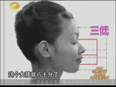四高:額頭、鼻子、嘴唇、下巴要突出來;三低:三條紅線標(biāo)記處要低