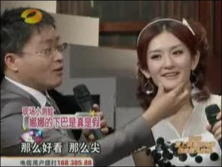 陳煥然在摸謝娜的下巴,看看是不是假的,最后證明是原裝的