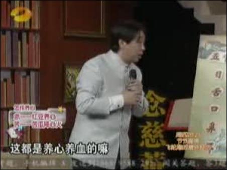 在昨天的節(jié)目中,張悟本重點介紹了五臟中的肝和部分心的養(yǎng)生,在今天的節(jié)目中(2010年2月2日),,張悟本繼續(xù)他的五臟養(yǎng)生。分別介紹了養(yǎng)心、養(yǎng)肺、養(yǎng)腎等要點和注意事項。