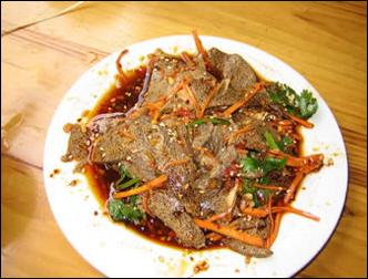 【原料】牛肉250克,胡蘿卜120克,鹽、胡椒粉、雞精、醬油適量。