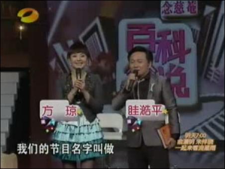 同時(shí),本期節(jié)目,還是謝娜離開之后,跳槽到湖南衛(wèi)視的央視節(jié)目主持人方瓊的處子秀。與她搭檔的還是臺(tái)灣的眭澔平。不過,與謝娜和李維嘉的搭檔主持相比,節(jié)目的娛樂搞笑性還是差了不少。