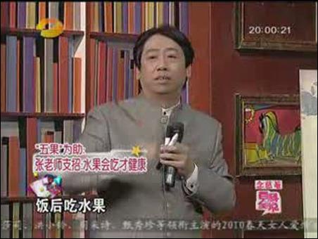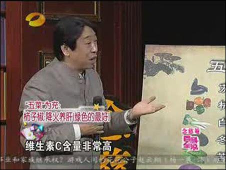 在3月17日的節(jié)目中,張悟本繼續(xù)講了五果、五菜在日常生活中的吃法。