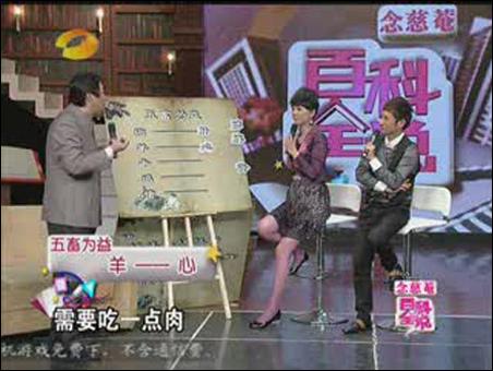 在3月18日的節(jié)目中,張悟本繼續(xù)講了五畜為益中關(guān)于吃肉方法。