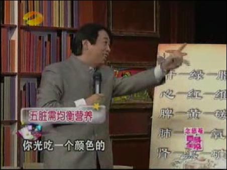 在3月15日的節(jié)目中,張悟本重點(diǎn)講了中醫(yī)治病的原則順序是:食砭針酒藥,以及“辯證施治,對(duì)癥下藥”的問題。要把吃出來的病,吃回去。