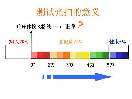 10,000 to 19,000:驚人的差(紅色區(qū)) – 大概有一半人的測(cè)試都到這個(gè)很危險(xiǎn)的指數(shù)。這些人的飲食習(xí)慣不健康,生活習(xí)慣也不健康,如果吃保健品的話,大多也無(wú)效(無(wú)法被身體吸收,營(yíng)養(yǎng)含量不夠或與成分說(shuō)明不符)。 長(zhǎng)期保持此指數(shù)水平,迅速衰老及患病概率較高,將成為各種慢性疾病和癌癥的可能侯選人,很難實(shí)現(xiàn)自然老死。