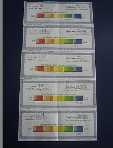 筆者在2008年的7月9日測(cè)得的抗氧化指數(shù)高達(dá)7萬(wàn).據(jù)機(jī)器的操作人員說(shuō),他這臺(tái)機(jī)器最高測(cè)試的一個(gè)人是7.5萬(wàn).看來(lái)我已經(jīng)逼近最高值了.