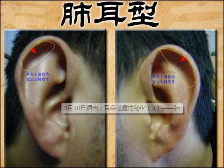 特征:耳舟上部尤其是耳周明顯寬大且較平坦是肺型耳特點(diǎn)。有的人此處會(huì)出現(xiàn)皮屑。
