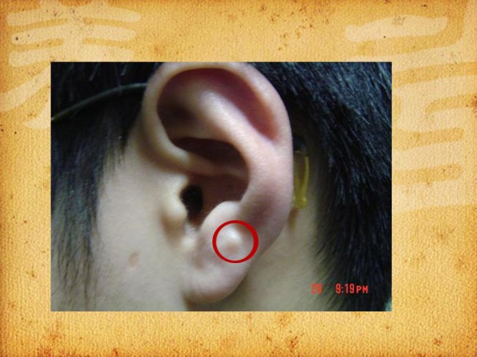 具體在耳朵上,有一個(gè)圓包,非常圓的,一般來說都反應(yīng)出來他的膽囊有問題,有的就跟小綠豆那么大,有的就跟黃豆那么大,就是個(gè)人體質(zhì)不一樣,表現(xiàn)的不一樣。