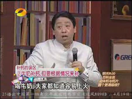 【byb.cn】?2010年4月14、15日,張悟本三上湖南衛(wèi)視百科全說(shuō),就補(bǔ)鈣問(wèn)題,向廣大電視觀(guān)眾闡述了自己的觀(guān)點(diǎn)。