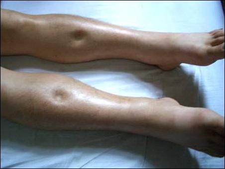 雙腿和雙腳均腫起,尤如穿了一雙靴子,是心衰的一種表現(xiàn),這就是俗稱的“穿靴”