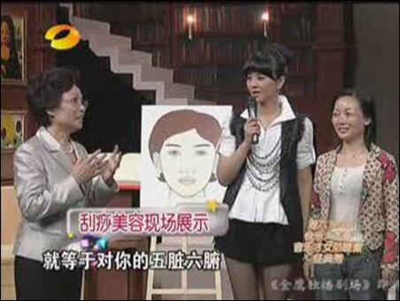 【byb.cn】?2010年5月13日,著名中醫(yī)養(yǎng)生專家張秀勤做客湖南衛(wèi)視百科全說,教您刮痧美容。