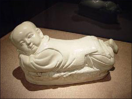 正是由于赤裸裸的文化侵略,可能好多現(xiàn)代讀者對(duì)于俺描述的中國(guó)古代枕頭的樣子已經(jīng)不是很清楚了。沒(méi)關(guān)系,俺放點(diǎn)圖片。咱們國(guó)家一件國(guó)寶,就是宋代小兒瓷枕,大概就符合俺說(shuō)的樣子。當(dāng)然了,這個(gè)枕頭就算在古代,也不是用來(lái)枕頭的,畢竟是瓷器,太硬了,誰(shuí)躺在上面,別管是中國(guó)腦袋,還是外國(guó)腦袋,都不會(huì)太舒服。另外,既然是藝術(shù)品嘛,那還是要有點(diǎn)美學(xué)上的夸張,反正大家看看樣子就行了,知道俺不是在胡說(shuō)八道。還有,據(jù)專家考證說(shuō),這種枕頭其實(shí)是用來(lái)墊胳膊的,有點(diǎn)類似現(xiàn)代的沙發(fā)扶手,所以,樣子就稍微有點(diǎn)怪怪的啦。