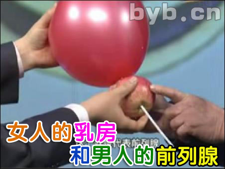 前列腺的位置:下面這張圖,截選自BTV養(yǎng)生堂的一期節(jié)目,上面的氣球,就是人的膀胱,而中間的蘋(píng)果,就是前列腺,吸管就是尿道,它剛好穿過(guò)蘋(píng)果和氣球聯(lián)接。這張圖清楚地表明了前列腺的位置。