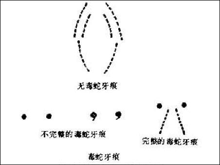 被蛇咬傷后,不要驚慌,先要確定是有毒,還是無毒之蛇,從下面這張牙痕圖上,我們就可以清楚分辯出來。