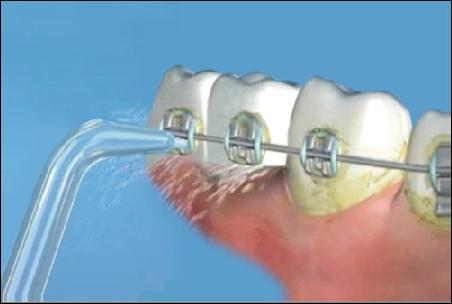 對戴牙齒矯正器的牙進(jìn)行沖洗