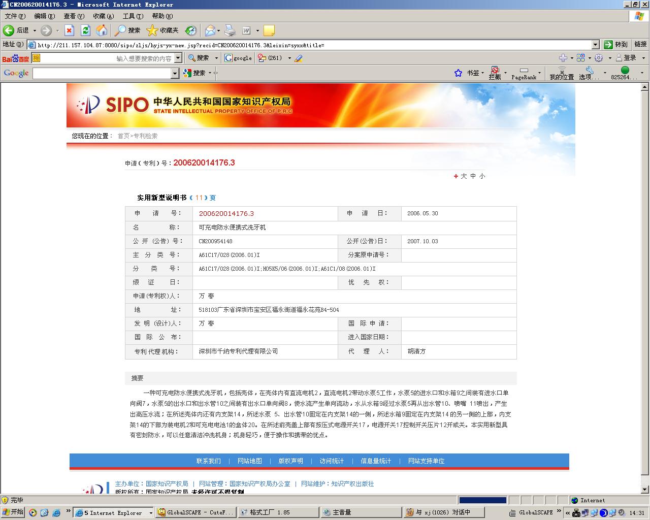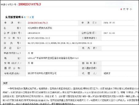 查了一下國家專利局的網(wǎng)站上確有凱電沖牙器實(shí)用新型的專利