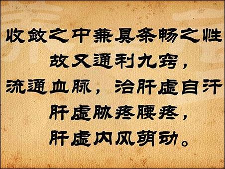 功效:這個(gè)藥是怎么來的,這個(gè)藥的植物叫山茱萸,它的果實(shí),等到采收的季節(jié)采收下來,然后取這個(gè)果肉,這個(gè)核要去掉,現(xiàn)在我們都叫凈芋肉,取它的肉,然后曬干,吃到嘴里是酸酸的,甜甜的,熬好以后非常的酸,在中醫(yī)里講這個(gè)酸入肝,山萸肉主要是滋補(bǔ)肝腎之陰的,最主要呢是滋肝陰。因?yàn)樗伾羌t的,紅的赤色入心,所以它是補(bǔ)心肝腎三臟之陰。