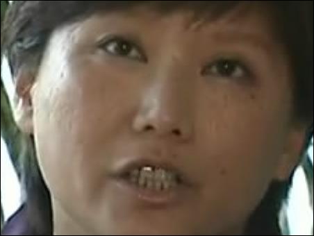 局部放大后,我們看到曲黎敏的牙縫很大,牙齦萎縮,色澤也不好