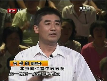 【byb.cn】自2010年7月21日起,北京同仁堂中醫(yī)院副院長宋福印做客北京電視臺養(yǎng)生堂欄目組,制作了一期關(guān)于<吃“藥”有講究>的健康養(yǎng)生節(jié)目。