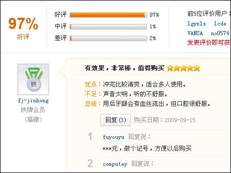在品牌選擇上,我在網(wǎng)上搜索了很長時間,發(fā)現(xiàn),用戶對潔碧沖牙器的評價都相當不錯。在京東商城,有486人發(fā)表評論,好評率超過了97%。