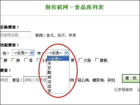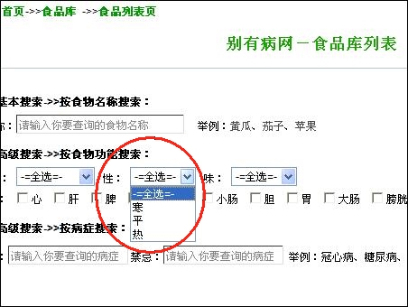 點(diǎn)擊此鏈接,進(jìn)入別有病網(wǎng)站食品庫(kù):http://zipl.cn/foodslist.aspx