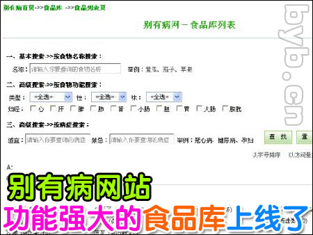 別有病網(wǎng)站發(fā)布功能強(qiáng)大的食品庫(kù)