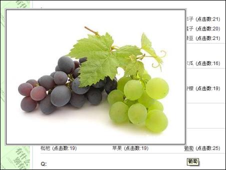把鼠標(biāo)放在葡萄處,馬上顯示出食物的圖片