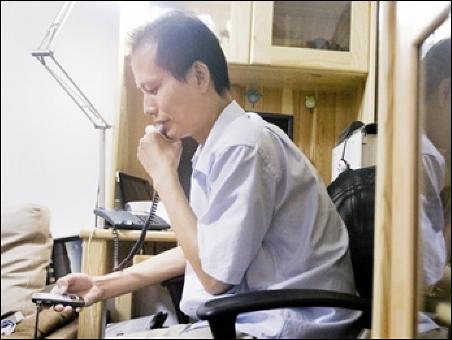 回到家中的方舟子,正在接聽朋友打來(lái)的電話 攝/記者 郭謙