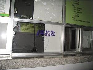 記者昨晚來到江寧湯山上峰衛(wèi)生院,此時(shí)門口冷清,鮮有人員走動(dòng)。在醫(yī)院門口,五六名保安來回走動(dòng),走進(jìn)院子里,還有警察跟了過來。當(dāng)?shù)弥浾呤遣稍L的,對(duì)方隨即避開了。而醫(yī)院門診的多扇大門玻璃被敲出窟窿來。而進(jìn)入室里,中藥取藥處及西藥取藥處的窗口,均可見玻璃被砸破,透過破裂的玻璃,醫(yī)院的值班人員仍然鎮(zhèn)定地坐在里面。而緊鄰醫(yī)院住院大樓前的大門玻璃,同樣被砸得七零八落。