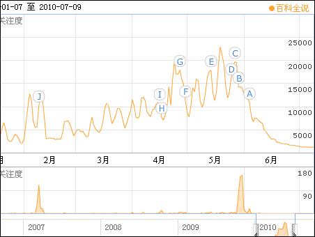 百度指數(shù)顯示,G點(diǎn)的位置是張悟本最后一次上湖南衛(wèi)視,其百度指數(shù)高達(dá)19813