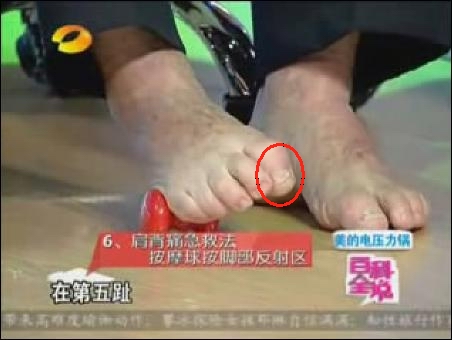 首次亮相的,是“吳若石+鄭英吉”組合。節(jié)目的“看點(diǎn)”就是“洋人”。吳若石,瑞士人,號稱是“足底按摩之父”。我們姑且不論他是不是足底按摩之父,從他的面相和身材看,我認(rèn)為他身體并不大健康,疑似有心腦血管病,最最讓人不可思議的是,作為足底按摩之父,他應(yīng)該有一雙完美的腳才對,但是他的腳,不僅肥厚,似乎還有點(diǎn)腫,特別是大拇指上居然還有灰指甲,很顯然,說明其微循環(huán)并不好。