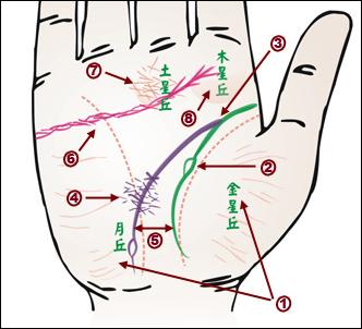 感情線多起伏,呈波狀,末端抵于木星丘,數條分岔。這是感情豐富,神經靈敏之象,但也常過于重漬,易受心靈之傷,不堪精神打擊。土星丘隆起,十字線、星形、短交叉線之類亂線模糊叢生。有此象者容易激動,是突發(fā)自殺型。木星丘隆起,過于發(fā)達,往往是孤高傲世者,寧為玉碎不為瓦全之觀念重。