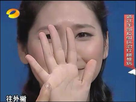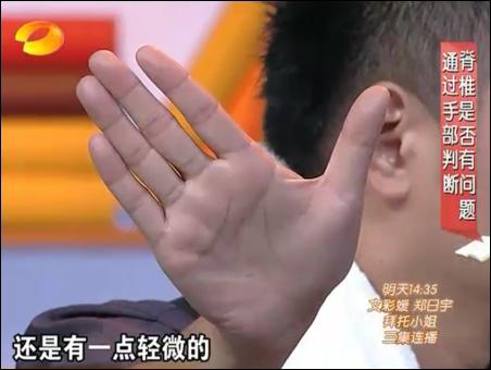 袁方講,如果伸出手,小手指往外撇,說明曉雯的腰椎有問題