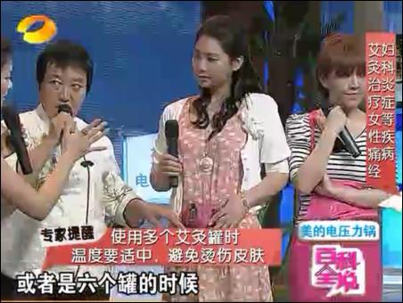 【byb.cn】?2010年10月27日、28日,百科全說欄目邀請有著40年臨床經(jīng)驗的中醫(yī)醫(yī)師單桂敏,和中國足部反射區(qū)健康法研究會理事,陜西省反射療法協(xié)會會長袁方,為廣大電視觀眾講解艾灸養(yǎng)生的相關(guān)知識。在這期節(jié)目中,袁方主要是利用手來診斷,而單桂敏則是實施艾灸治療,形象、生動。這期節(jié)目重點是介紹艾灸對治療女性婦科疾病、不孕不育等。