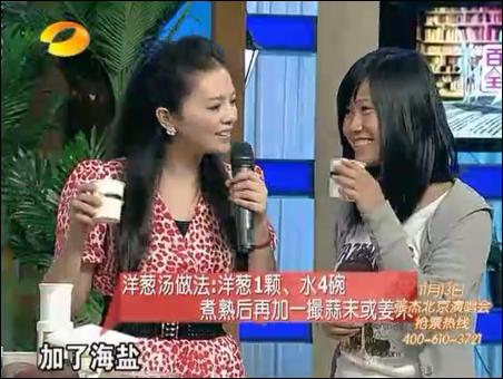 這位觀眾上臺(tái),試喝洋蔥湯,覺得味道不錯(cuò)